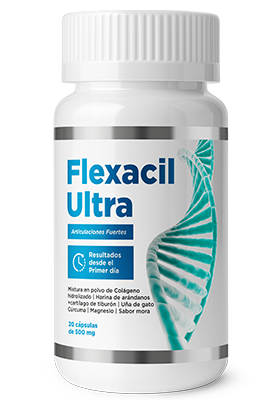 Este es Flexacil, un desarrollo único del Instituto de Investigaciones Clínicas del Perú. Flexacil es un complejo de componentes naturales, seleccionados en proporciones adecuadas, que ayudan a activar los procesos celulares de regeneración y renovación del tejido articular.